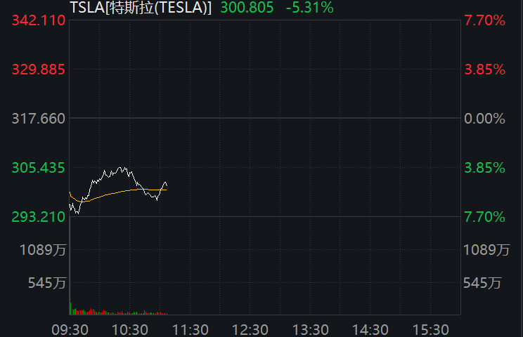 受此影響,特斯拉股價暴跌。截至發(fā)稿,跌幅為5.31%。